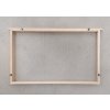 Ručně vyráběná stlučená či sponkovaná konstrukce včelích rámků o rozměrech 39 x 24 cm s nerezovým výpletem, mezerníky a zděřemi.
