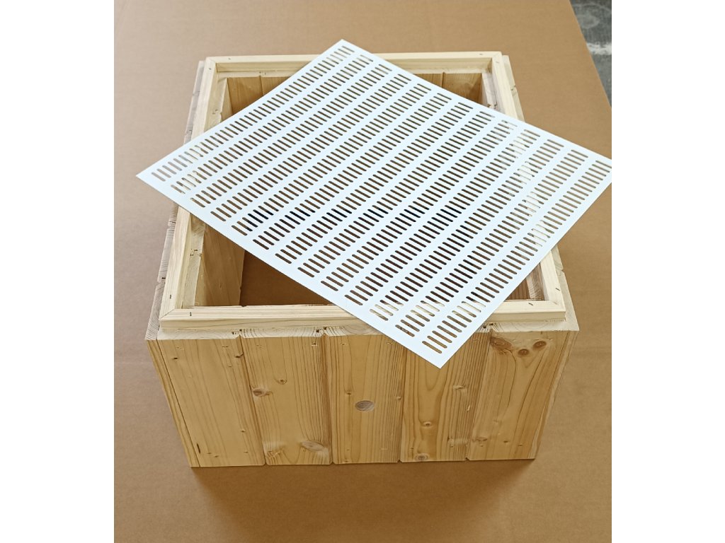 Tato mateří mřížka se používá se v nástavkových úlech nejen obdélníkového půdorysu. V případě potřeby lze mřížku libovolně zaříznout i tak zůstává nadále perfektně pevná.