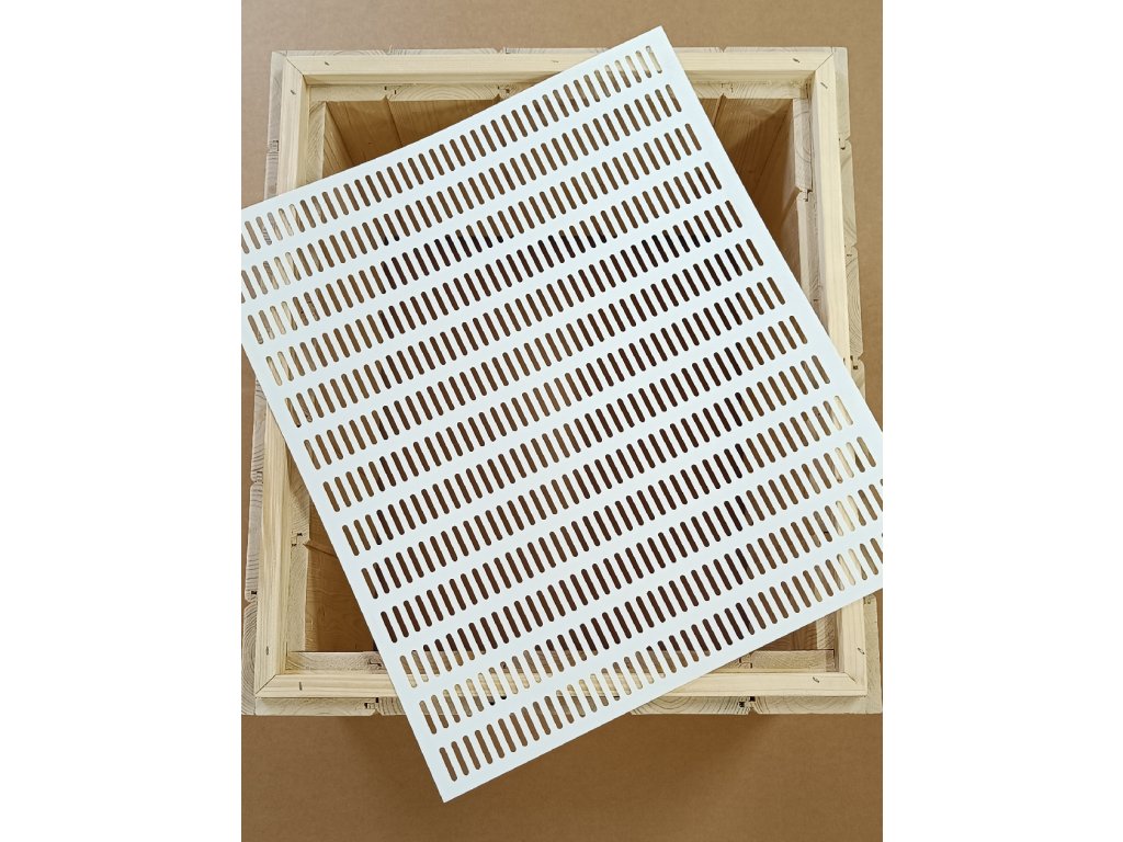 Plastová mateří mřížka o rozměru 46,5x40 cm zabraňuje vstupu královny do medníku, tak aby matka zůstala jen v plodišti a nekladla plod do medníku.