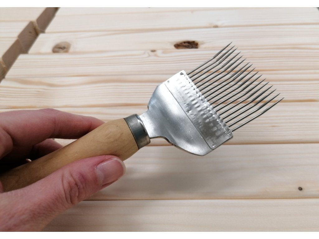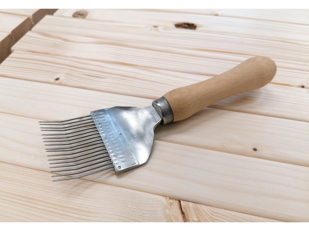 Odvíčkovací vidlička lomená - 19 jehel (dřevěné madlo)