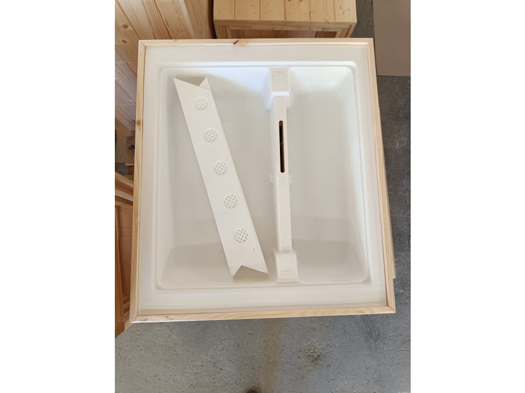 Táto zostava obsahuje navyše stropné krmítko v drevenej konštrukcii s obsahom 5 litrov.